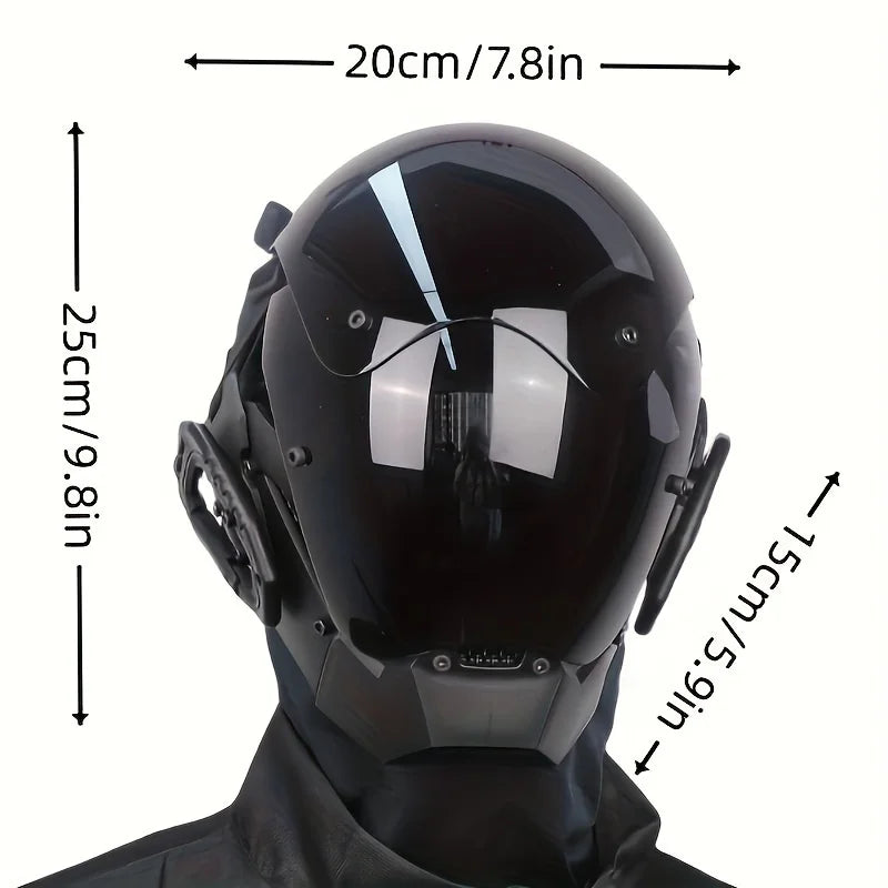 A bold cyberpunk-style mask crafted from durable PVC for a sleek, mechanical look. Lightweight and comfortable for cosplay, parties, or themed events, it blends style with futuristic flair — perfect for Halloween or costume play.